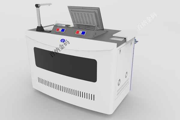 隨身物品拍攝儀,又叫精拍儀,固定在顯示器的右邊,采用可折疊方式,在使用時將其打開拉至水平位置,對隨身物品及原筆跡進(jìn)行拍攝。網(wǎng)格線形式的拍照底板,提供參考比例尺。